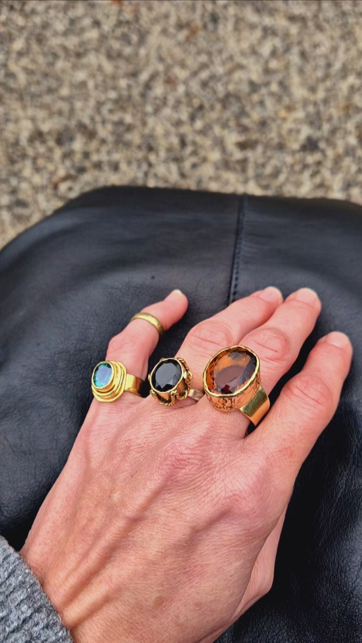 Anisija ring is commanding statement piece that beautifully merges an earthy, antique aesthetic with a powerful, confident energy. It is crafted to draw the eye